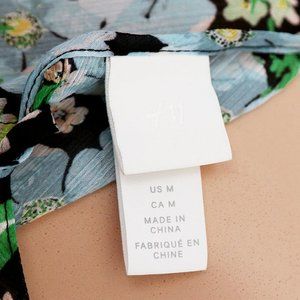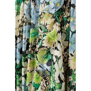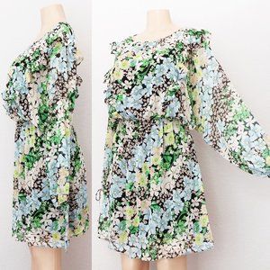 H&M Spring Summer Floral Flowy Chiffon Ruffle Trim Dolman Sleeves Dress M Green