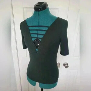 EUC. No signs of wear. H&M Strappy V-Neck Green Going Out Top Short Sleeve Size S. Stretchy top. Polyester blend. Smoke-free home.