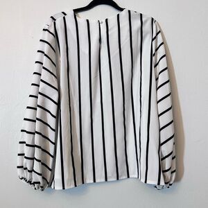 H&M Striped Bishop Long Sleeve Keyhole Button Back Blouse White Large