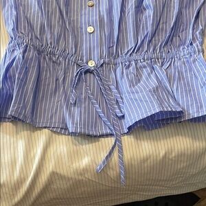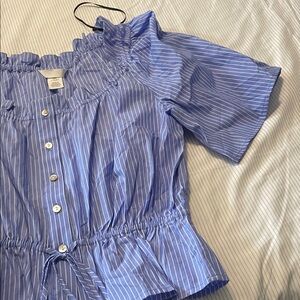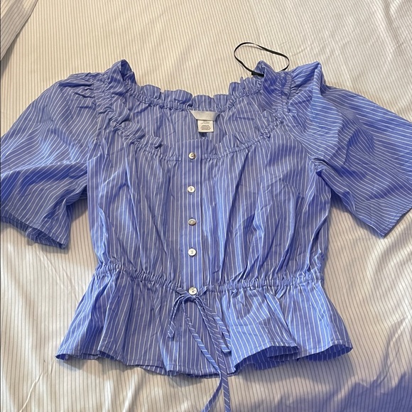 H&M Striped Blue Ruffle Blouse