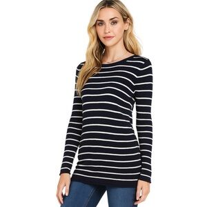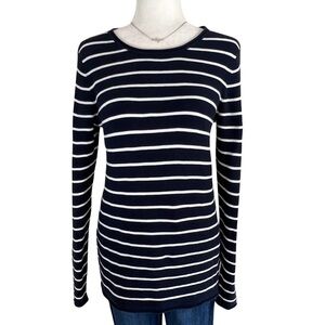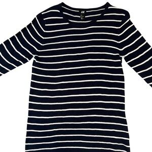 Striped crewneck knit sweater from H&M in navy blue and white Sz small