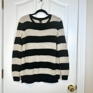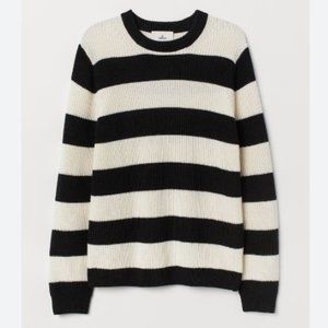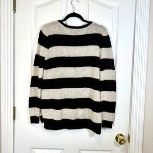 Soft, rib-knit sweater with gently dropped shoulders, and long sleeves.