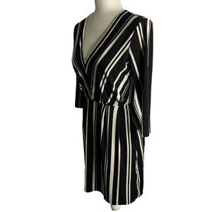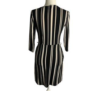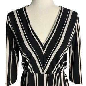 H&M Striped Mini Dress XS Black White Pockets 3/4 Sleeve V Neck Elastic Waist