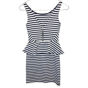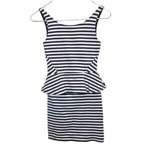 Womens H&M blue & white striped dress. Ruffled peplum bodycon fitted design. Sleeveless strapped top. Thick sturdy material with some stretch. Back zipper closure.