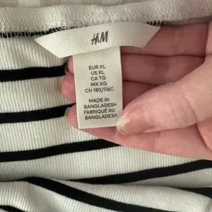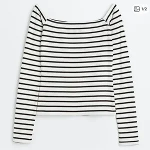 H&M off-shoulder top with horizontal stripes and a ribbed knit for a fitted look.