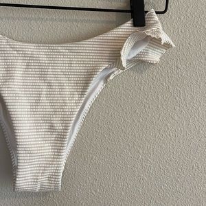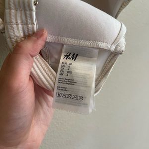 Tags: H&M, women’s, bikini, swim, swimsuit, top, bottom, stripes, striped, stripe, white, cream, beige, tan, ruffle, strapless, spring, summer
