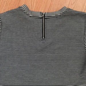 short sleeve, round neck, horizontal stripe, 1/4 zipper in back, stretch