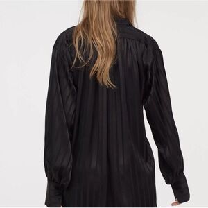 Step into sophisticated style with this Studio Collection blouse from H&M. Crafted in a luxurious pattern-weave viscose with a soft sheen, this elevated wardrobe staple features a modern silhouette with elegant draping and bold detailing. The stand-up collar, bib-front button placket, and wide cuffs add a structured yet fluid appeal—perfect for dressing up denim or pairing with tailored trousers.