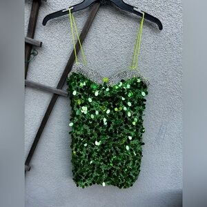H&M Studio Green Sequined Embellished mini Dress Designer Re-enchantment