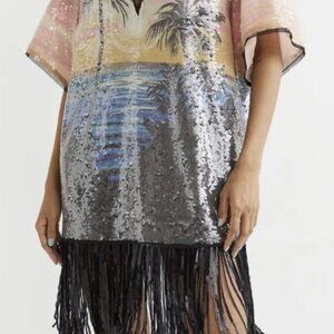 H&M Studio Palm Tree Sunrise sequin shiny fringe Chloe Ibiza dress XS/S
