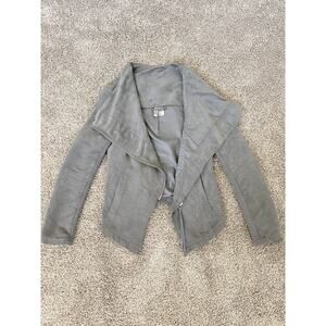 Gray suede jacket with a diagonal zipper. Looks cool zipped or unzipped. In great condition. size 2