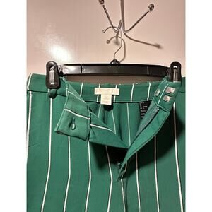 H&M Suit Pants Women's Green & White Woven Stripe High Waist Wide Leg Trouser 2