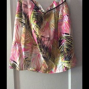 A cross over in the front, tropical floral skirt., with a thin belt!