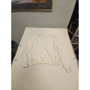 Add some sparkle to your winter wardrobe with this beautiful H&M sweater in a creamy ivory color. The cable-knit design gives it a cozy feel, while the sequin accents add just the right amount of holiday bling. Long sleeves and a comfortable fit make it perfect for any occasion. Sized as L, this pullover sweater is made of a cotton blend with a knit fabric type. Solid in pattern, it is perfect for any winter outfit.