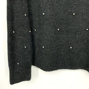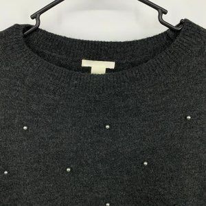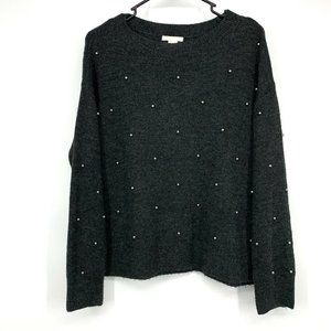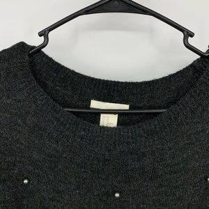 H&M Sweater Gray Pearl Beaded Embellished Long Sleeve Pullover Crew