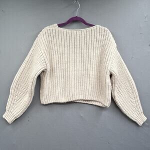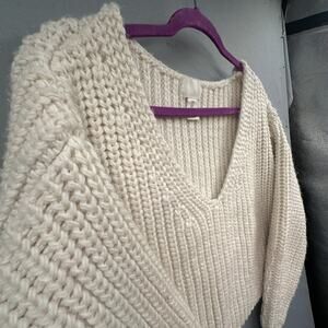 TITLE: H&M Sweater M White Chunky Crop Cable Knit V-Neck College Cozy Cabin Y2K Street