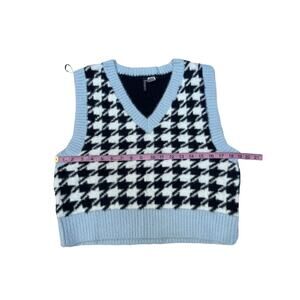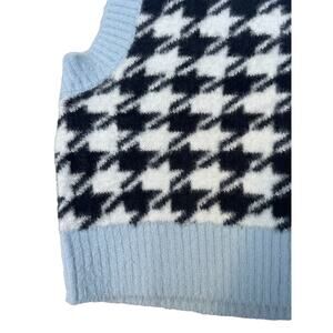 H&M Sweater Vest Houndstooth Divided Medium Jacquard Knit Blue Black Check Fuzzy