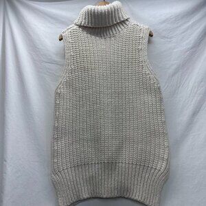 H&M Sweater Vest Womens S Cream Turtleneck Chunky Oversized Preppy Fisherman