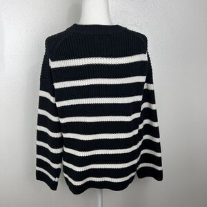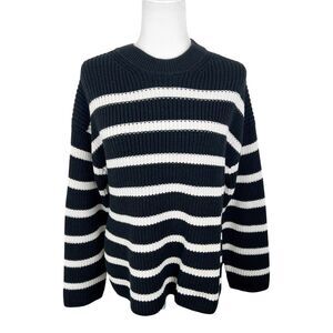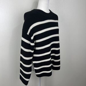 H&M Sweater Women Small Black White Striped Chunky Knit Pullover Oversized Relax