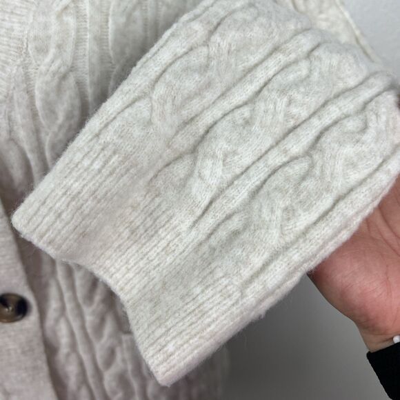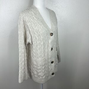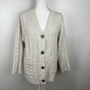 H&M Sweater Women Small Tan Knit Cardigan Button Up Wool Blend Grampa Pockets