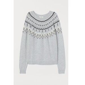 - H&M Women's Light Gray Alpaca Wool Fair Isle Comfy Cozy Sweater