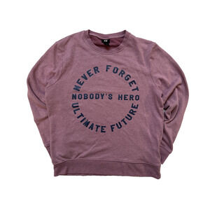 H&M Sweatshirt Women Medium Purple Crewneck Graphic Slogan Never Forget Oversize