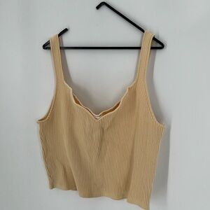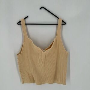 Sweetheart neckline ribbed knit top. In excellent condition with no notable flaws. Measurements (taken flat): Pit to pit: 18” + stretch Length: 12.5”