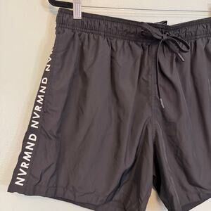 H&M Swimming Shorts Mens XL Black NVRMND Side Print Casual Drawstring Beach Surf