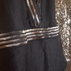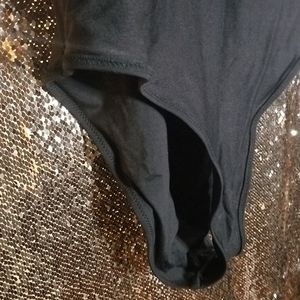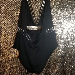 Black, one peice ,tie halter, see-through detail, Highcut leg, never worn, tags attached