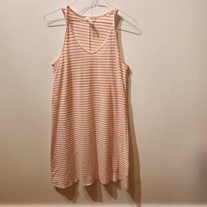 H&M Sz M Orange & White Striped Midi Dress Sleeveless Scoop Neck Casual Summer