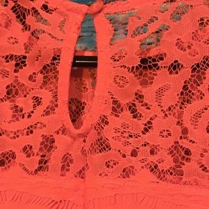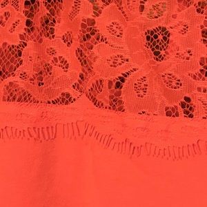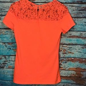 This very comfortable adorable t-shirt by H&M is it soft cotton blend t-shirt with lace tops and shoulders. Salmon color and size small