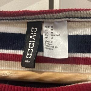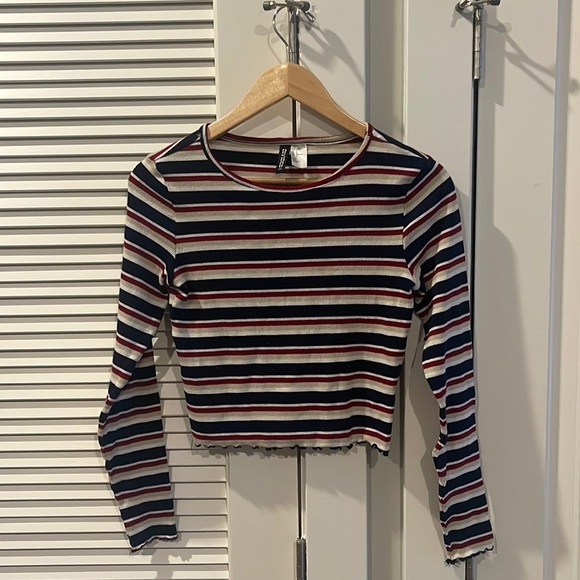 Navy blue, red and white striped long sleeve top. It’s SUPER soft and perfect for a winter night out