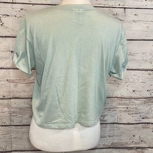 Gently used. Light sage green cropped pocket tee with rolled sleeves. 60% cotton/ 40% polyester. Measures 21" pit to pit and 17.75" shoulder to hem.