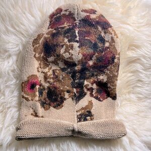 This warm beanie is so beautiful with a boho vibe, tan knit and floral design.
