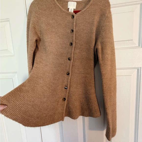 H&M Tan Ribbed Button-Front Sweater Cardigan