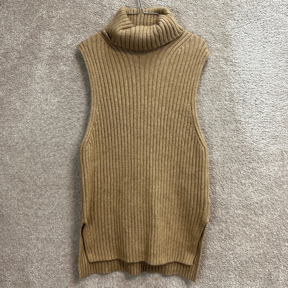 Stylish ribbed mini dress. Features a cozy turtleneck. Perfect for layering.