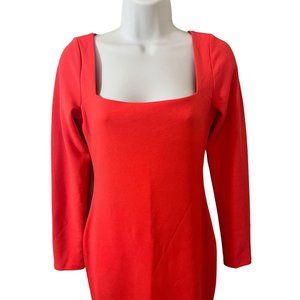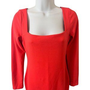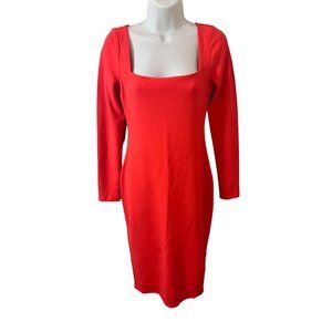 H&M Tangerine Orange Square Neck 1/4 Sleeve Fitted Bodycon Tight Dress Small