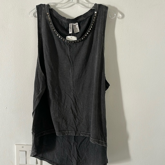 H&M high-low tank top with stud detail on front neckline. Black washed color, size L
