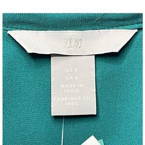 H&M Teal Green Flutter Sleeve Blouse NWT Size 6 EUR 38 V-Neck Tuxedo Pleat Eco Conscious