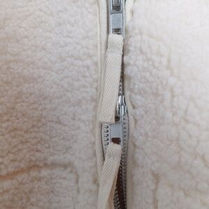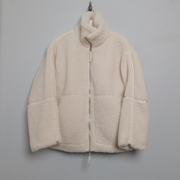 Loose-fit jacket in soft teddy fleece. Stand-up collar, two-way zipper at front, and diagonal welt side pockets. Dropped shoulders and long, wide sleeves. Lined.