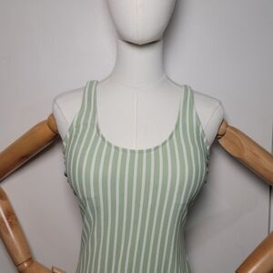 H&M Textured Sage Green & White Pinstripe Modest Swimsuit Size Medium