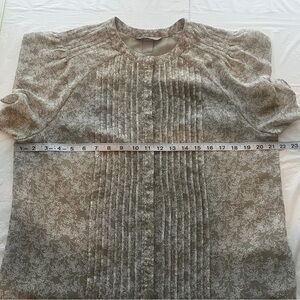 Elegant green blouse with textured front. Features short sleeves and round neckline. Perfect for versatile styling.