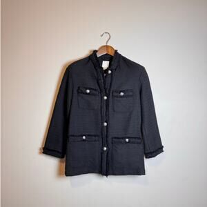 Chic and structured, this H&M Textured-Weave Jacket features a classic boxy with a polished, vintage-inspired feel. Designed with a soft, textured fabric, front pockets, and clean lines—perfect for layering over both casual and dressy looks.