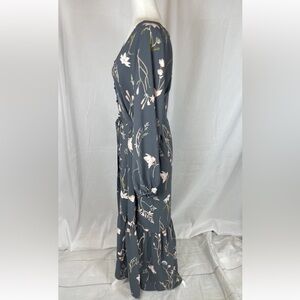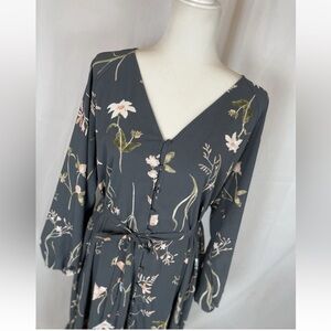 H&M Tie Belt Crepe Dress Gray Floral Long Button Present Sleeve Woman’s Size S