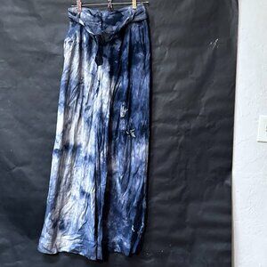 H&M Tie Dyed Cotton Black Pants Blue Size 8 Wide Legged Trousers Slacks Cotton