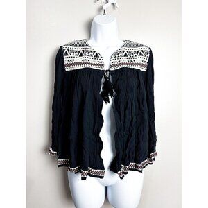H&M Tie Front Aztec Print Embroidered Cardigan Womens 10 Black