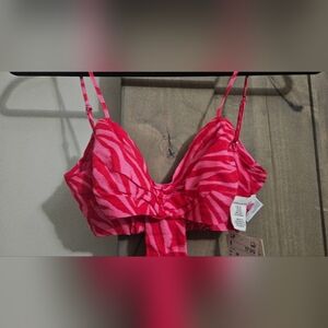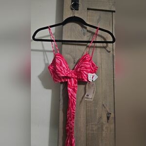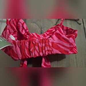 H&M Tie Front Linen Blend Bralette Crop Top. Zebra Print Red/Pink. Size XS NWT