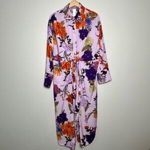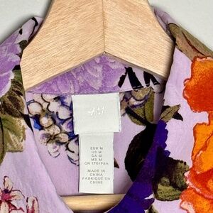 H&M Tie-Front Lavender Purple Floral Shirt Dress Sz M