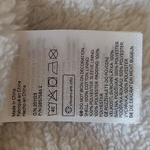 From the H&M website: Jacket in coated cotton twill with a detachable, faux shearling-lined hood. Stand-up collar, zipper at front with a chin guard, welt side pockets, and inner ribbing at cuffs. Lining in faux shearling. Polyester content is partly recycled.