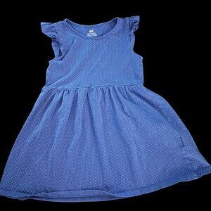 H&M Toddler Girls Dress 2-4 Years Blue with Tiny White Polka Dots Organic Cotton